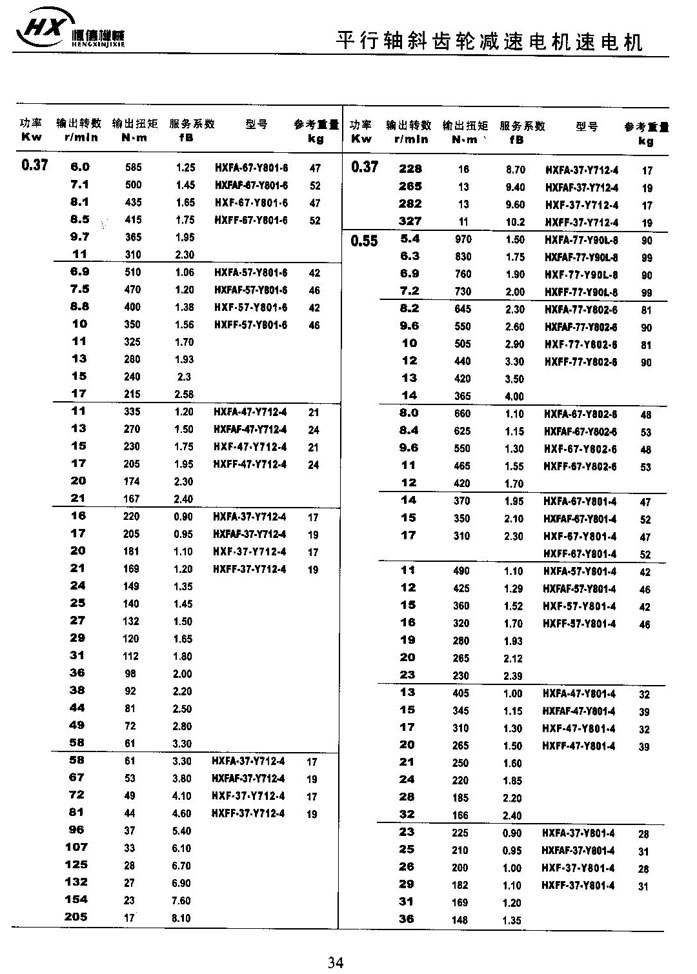 HXF系列斜齒輪減速電機(jī)技術(shù)參數(shù)